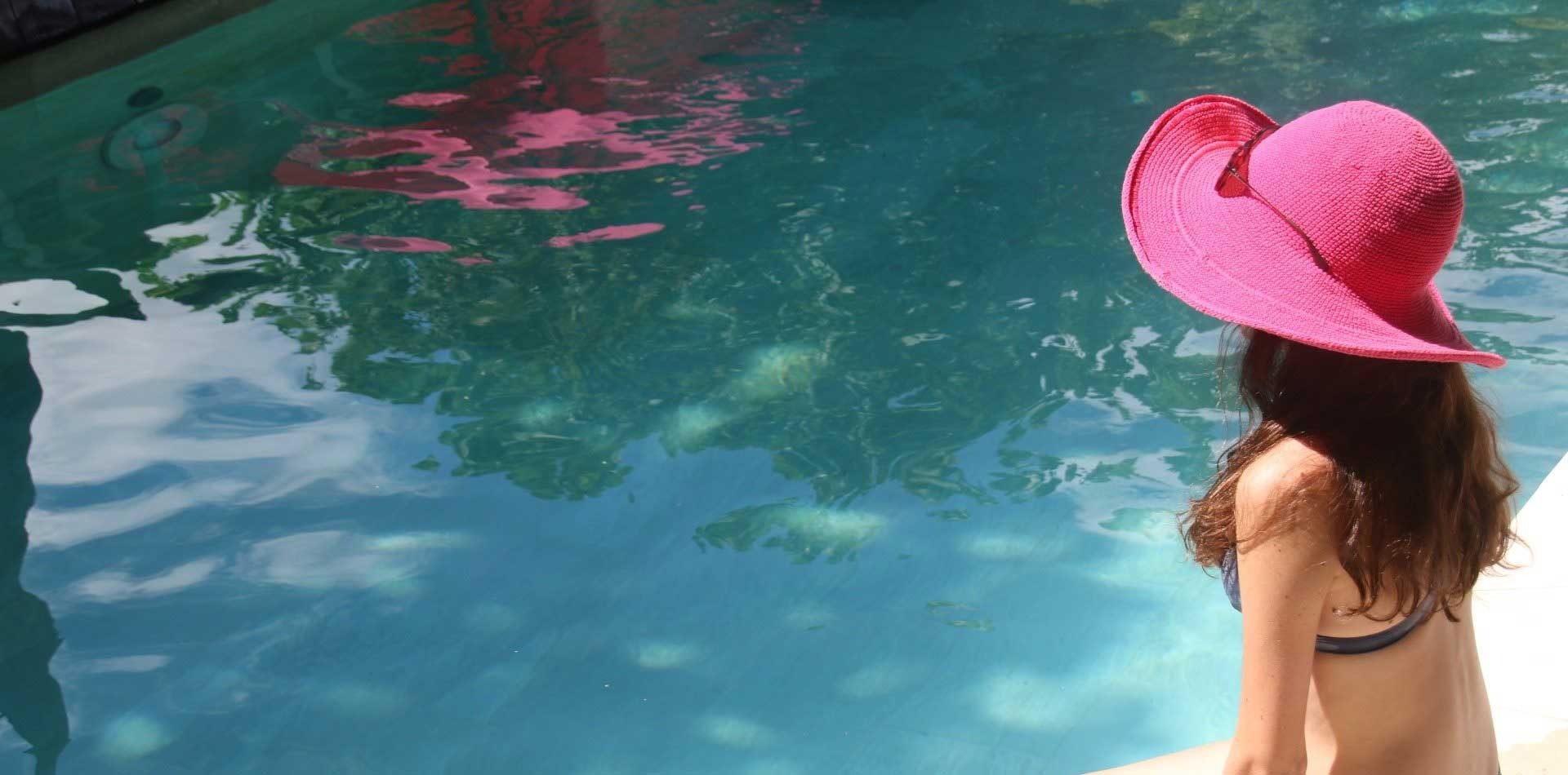 Réalisée en pierres naturelles aux couleurs du lagon, la piscine vous offre une pause rafraichissante au milieu des différentes espèces de palmiers de la Réunion.